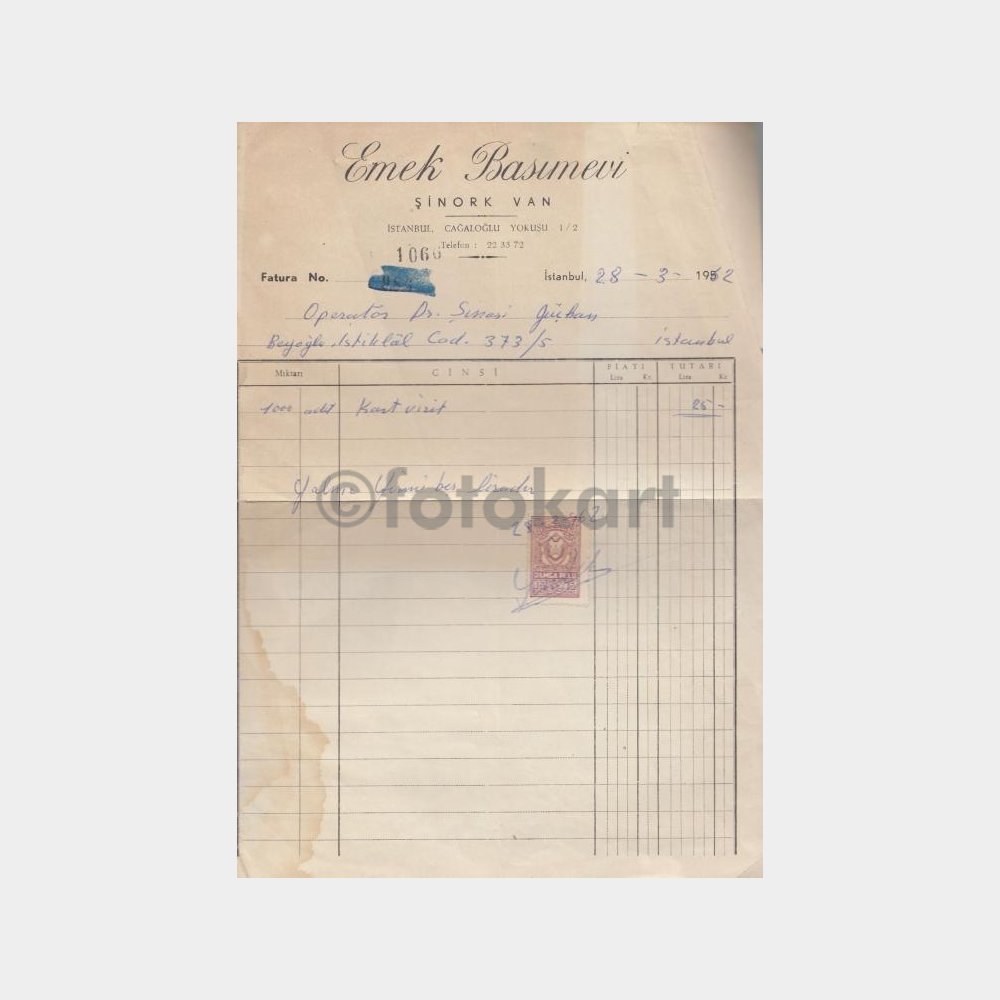 “1962 Cağaloğlu Emek Basımevi Matbaa Faturası” için yorum yapan ilk kişi siz olun