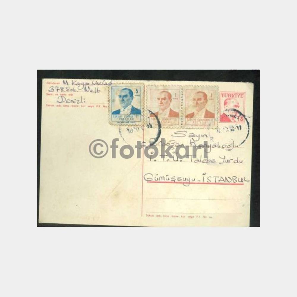 1962 Denizli posta damgalı antiye, posta kartı arkası yazılı durumda
