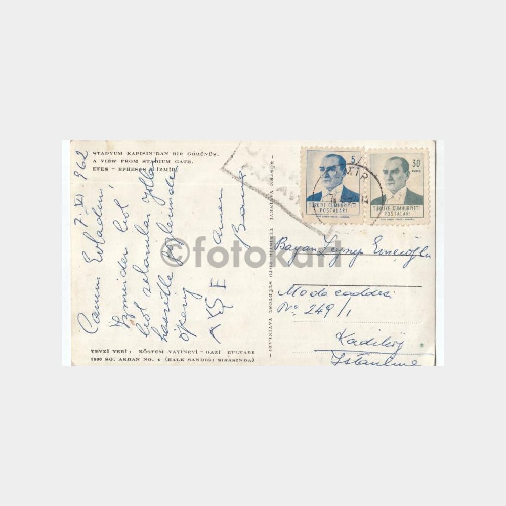 Çok temiz durumda, arkası yazılı kartpostal, İzmir posta damgalı.