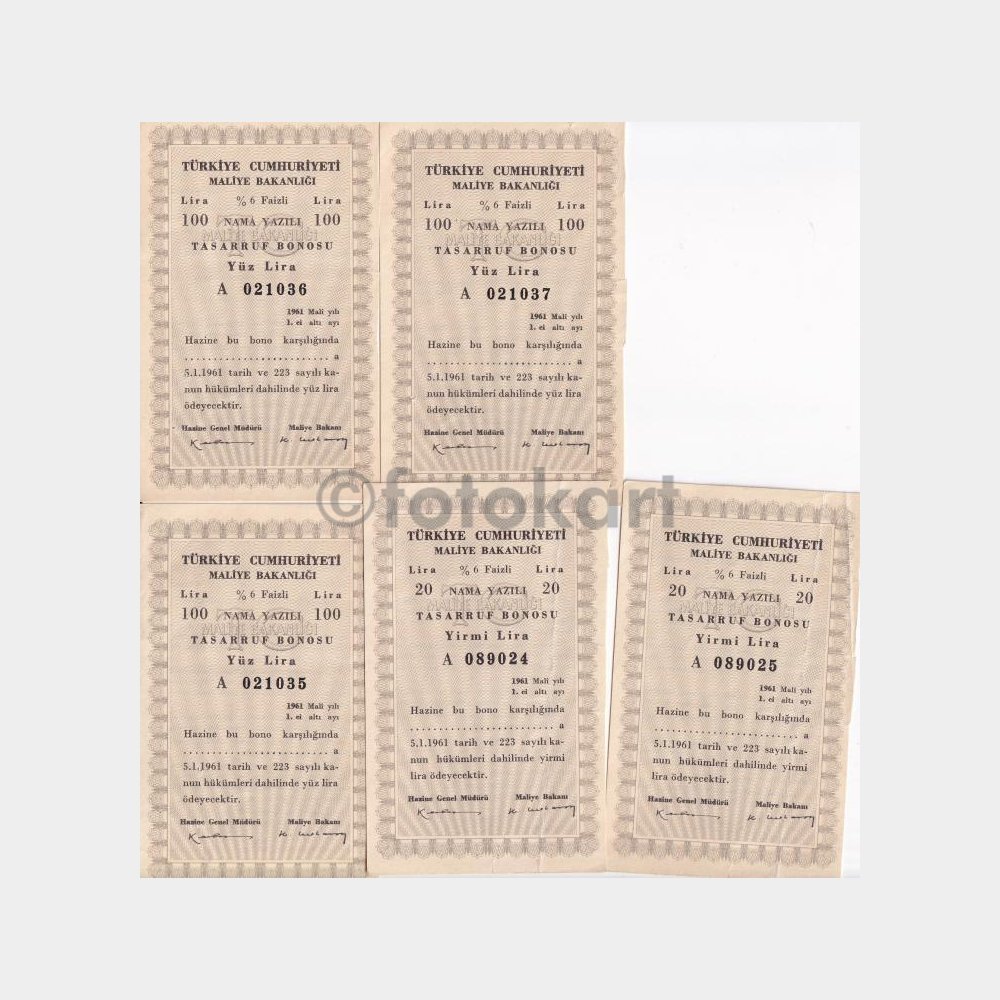 1962 Yılı 5 Adet Tasarruf Bonosu Lotu