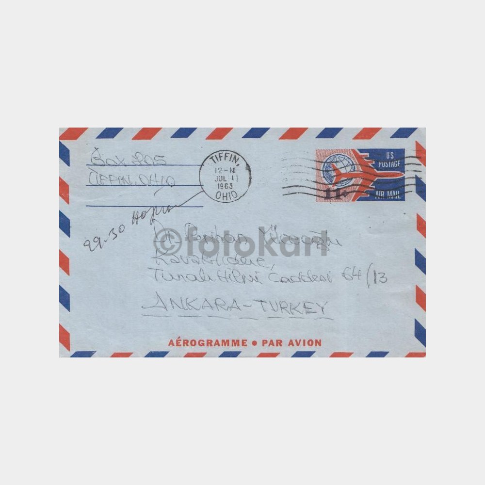 1963 ABD Aerogram Hava Mektubu Uçak Zarf