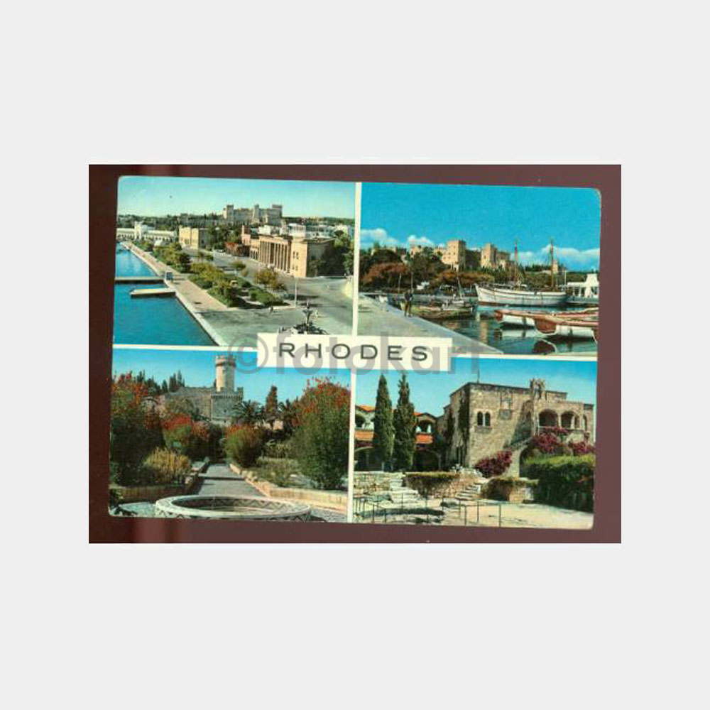 Arkası yazılı. Türk pulları ile Bornova’dan postaya verilmiş Rodos kartpostal.