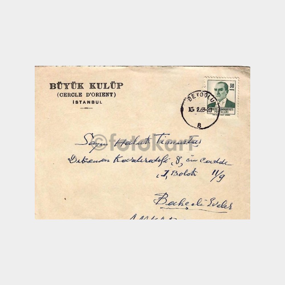 1963 Büyük Kulüp – Cercle Orient İstanbul Baskılı Zarf