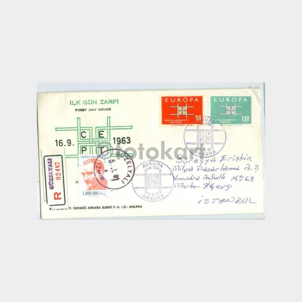 16.9.1963 Europa CEPT zarfı üzerinde 05.07.2001 Güzelyalı damgası.