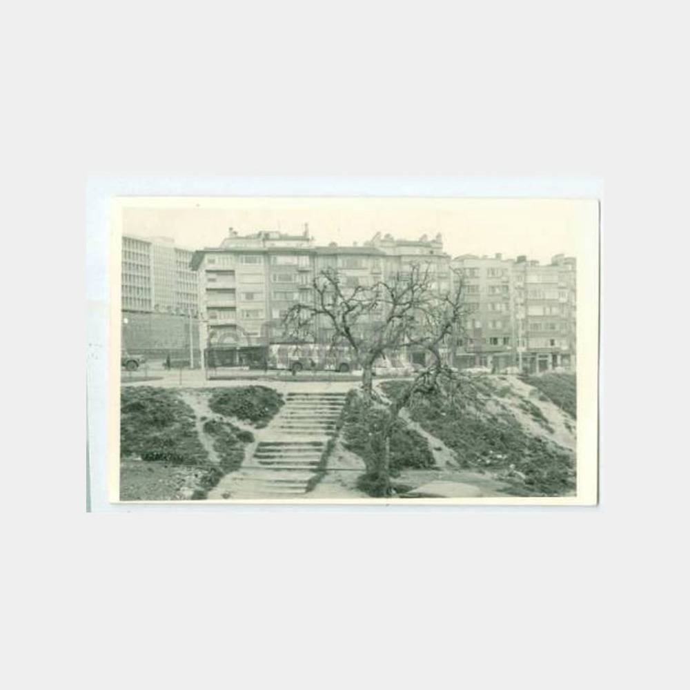 14 x 9 cm ebadında arkası yazısız albümden çıkma fotoğraf, belediye sarayı ile Aksaray’a inen bulvar kenarından alınmış karşıda emlak kredi binaları görülmekte