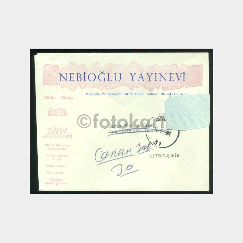 1963 Nebioğlu Yayınevi Mektubu Zarfı-Kart