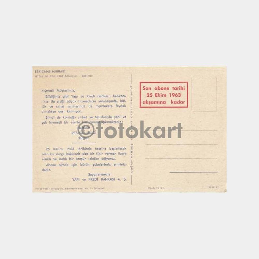 1963 Yapı Kredi Edirne Eskicami İkramiye Kartı