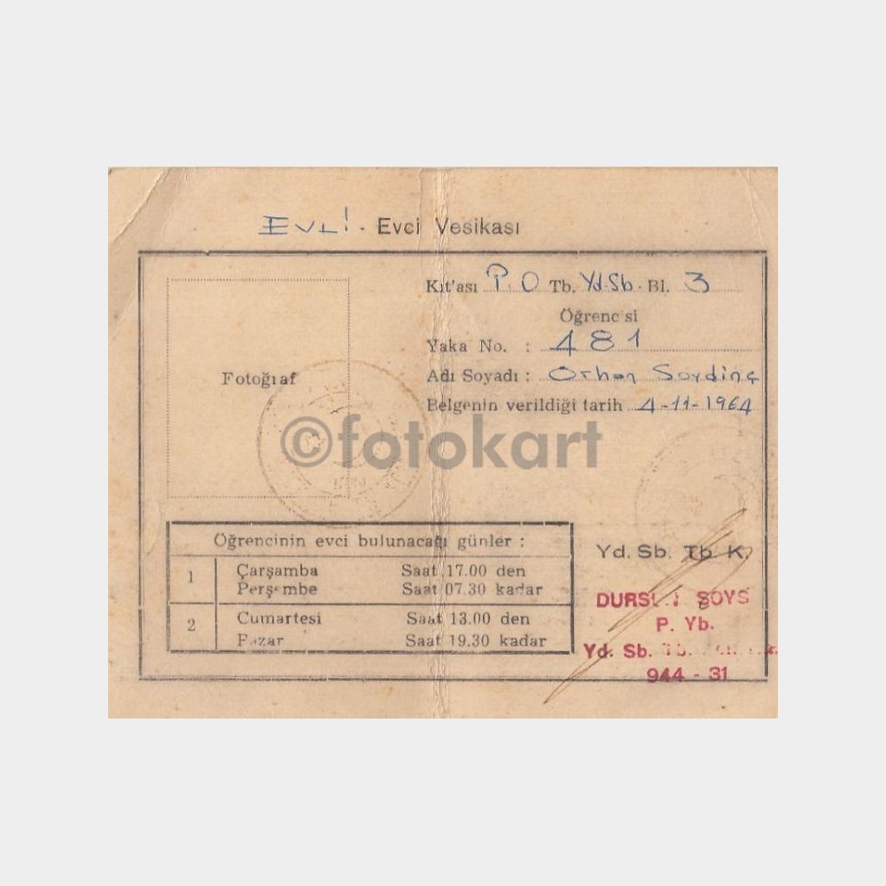 “1964 Askeri Birlik Evci Vesikası Kartı” için yorum yapan ilk kişi siz olun