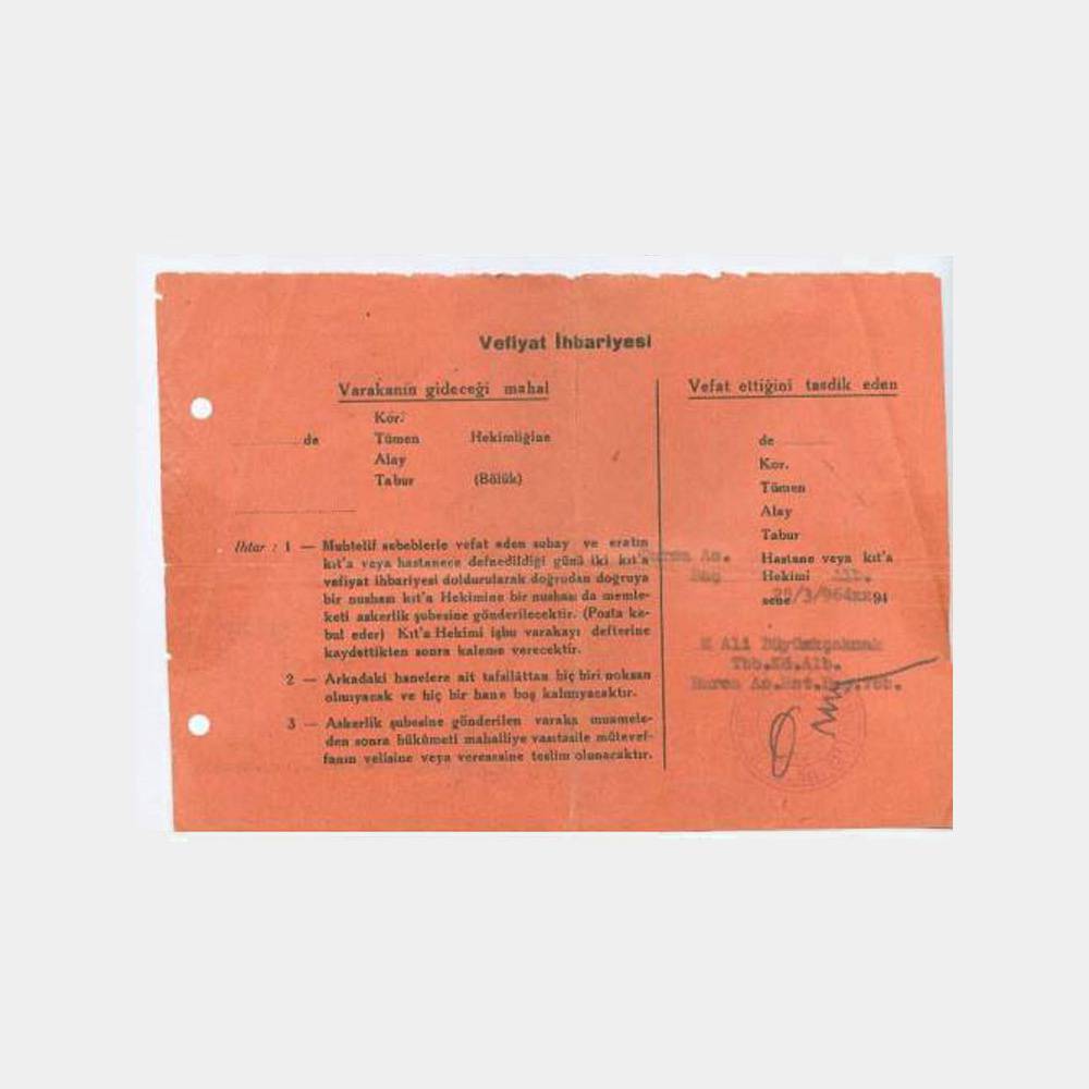 “1964 Askeriye Vefiyat İhbariyesi Belge” için yorum yapan ilk kişi siz olun