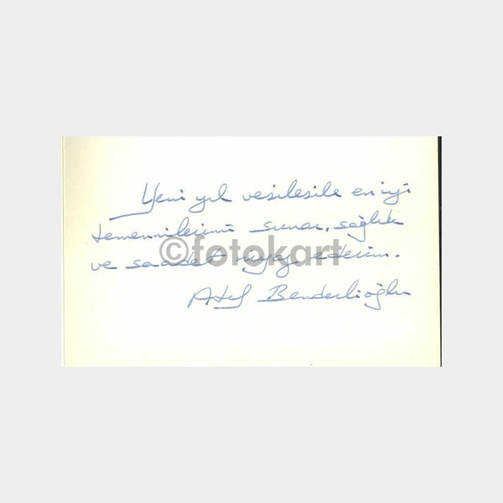 Topkapı Sarayı merasim minyatürü kartı. Mehmet Atıf Benderlioğlu, (d. 1910, Akdağmadeni, Yozgat – ö. 27 nisan 1992, Ankara), Türk siyasetçi. Ankara Üniversitesi Hukuk Fakültesini bitirdi. Sümerbank müşavir avukatlığı, serbest avukatlık, Ankara Belediye Başkanlığı, 10. dönem Ankara, 11. dönem Yozgat milletvekilliği ile Milli Eğitim Bakanlığı yaptı. 27 Mayıs darbesinden sonra Yassıada’da 10 yıl hapse mahkum edildi. 1964 yılında aftan faydalandı. Sonra Cumhuriyet senatosu Ankara üyeliği (12 ekim 1975 – 12 eylül 1980) yaptı. Evli ve 2 çocuk babasıydı.
