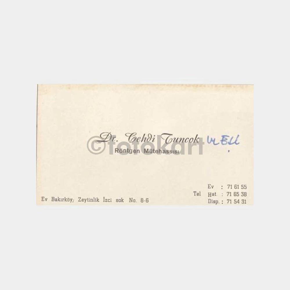 1964 Bakırköy Röntgen Vehdi Tuncok Kartvizit