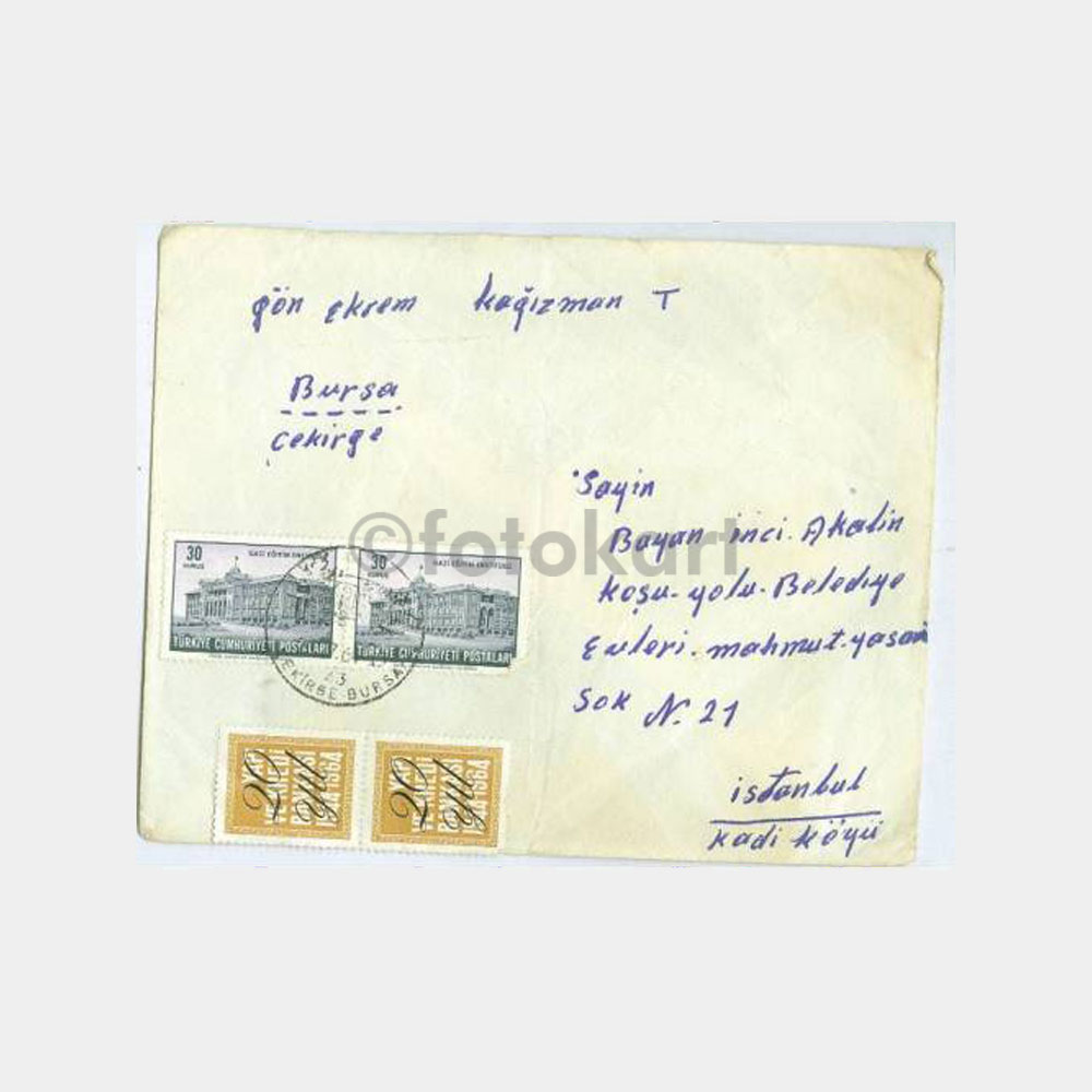 Üzeerinde yapı kredi 20.yıl reklam pullu ve Çekirge posta şubesi turistik damgalı zarf