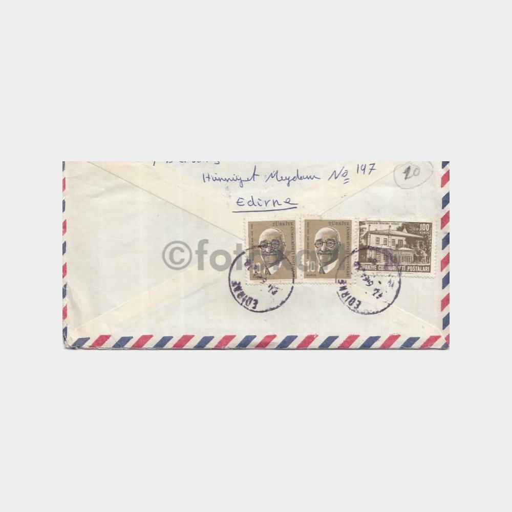 1964 Edirne Posta Damgalı Uçak Zarfı