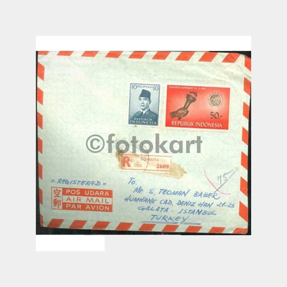 1964 Endonezya Cakarta Damgalı Mektup Zarfı