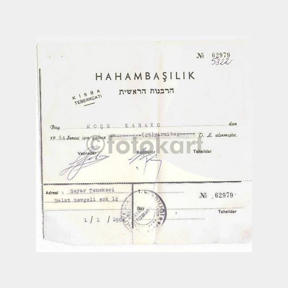 “1964 Hahambaşılık Kisba Teberrüatı Makbuzu” için yorum yapan ilk kişi siz olun