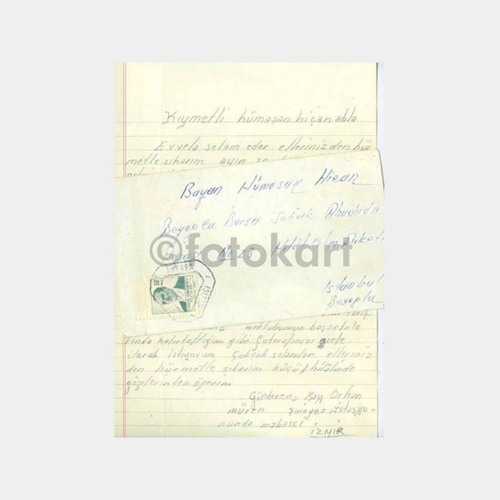 İçinde bulunan mektupta Zeki Müren’in amcasının oğlu Orhan Müren’in dönemin sinema sanatçısı Hümaşah Hican’dan kart talebi yazılı, çok ilginç belge ve zarf