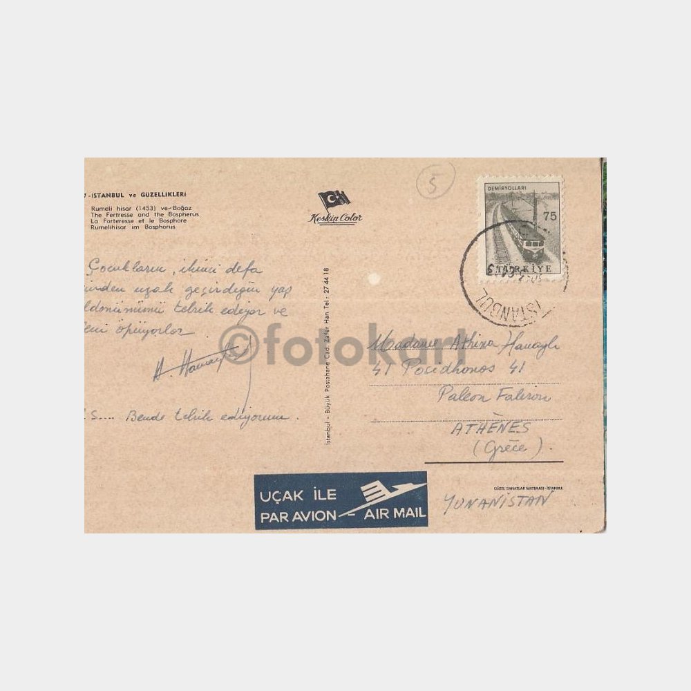 1964 Rumelihisarı Vapur Görünüş -Tren Pullu İstanbul Damgalı- Kartpostal