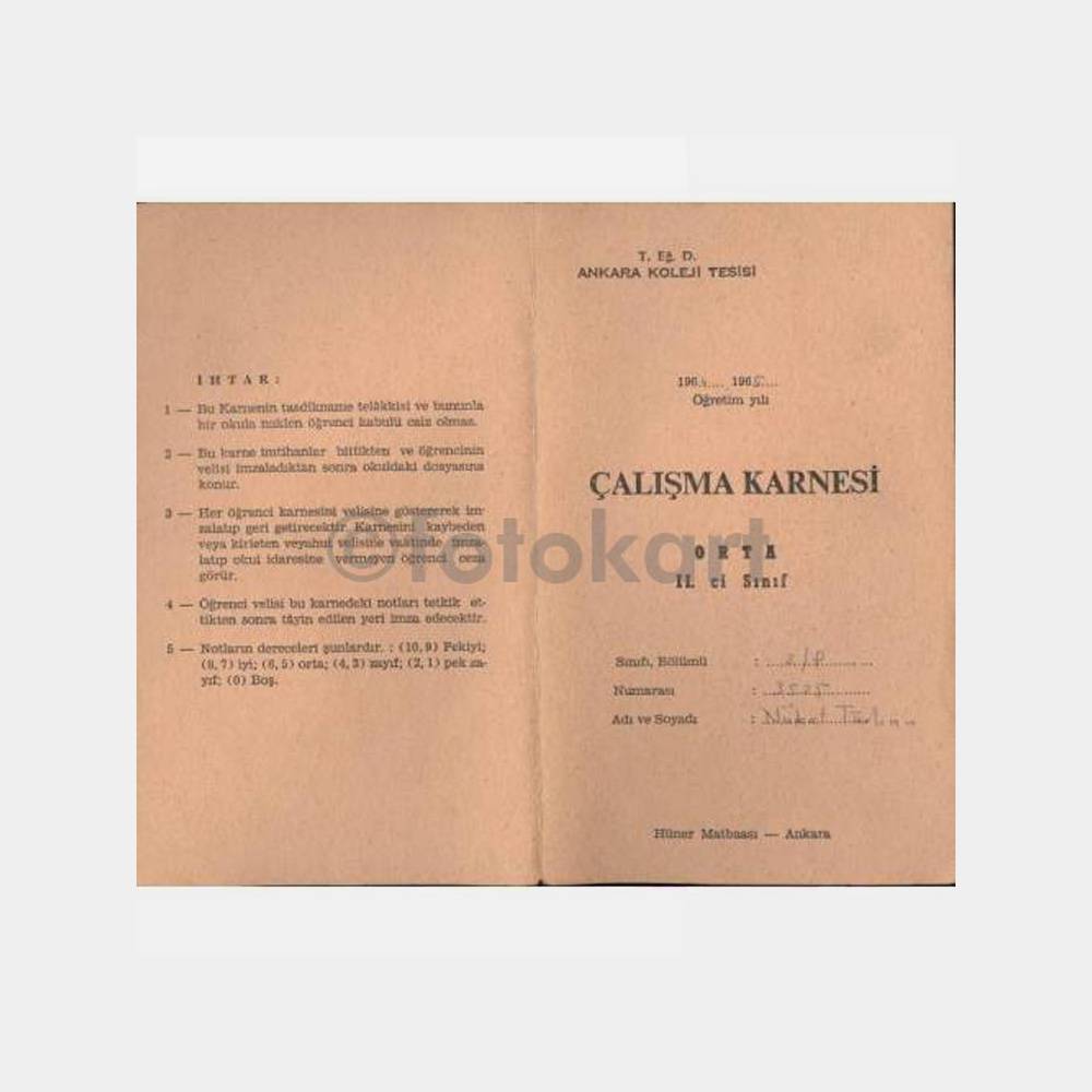 1964 TED Ankara Koleji Karnesi