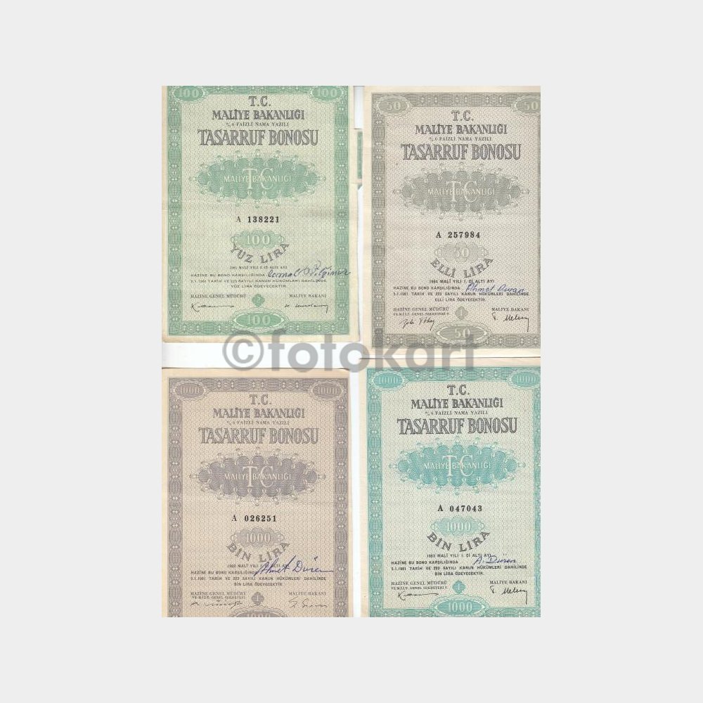 “1964 Yılı Tasarruf Bonosu Lotu (Muhtelif Küpür Değerli-15 Adet)” için yorum yapan ilk kişi siz olun Yanıtı iptal et