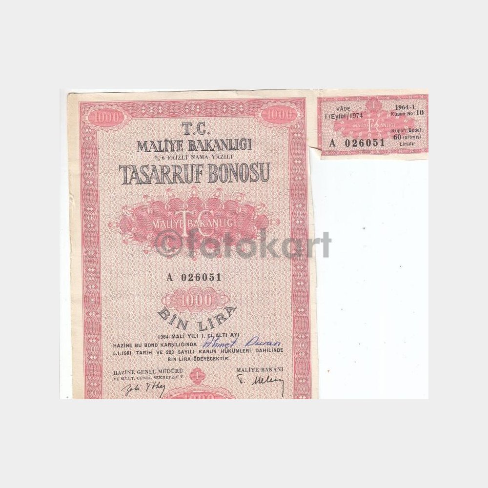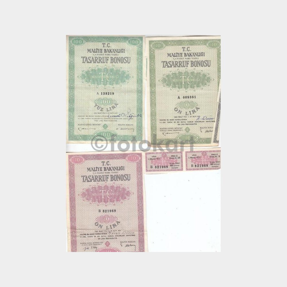 1964 Yılı Tasarruf Bonosu Lotu (Muhtelif Küpür Değerli-15 Adet)