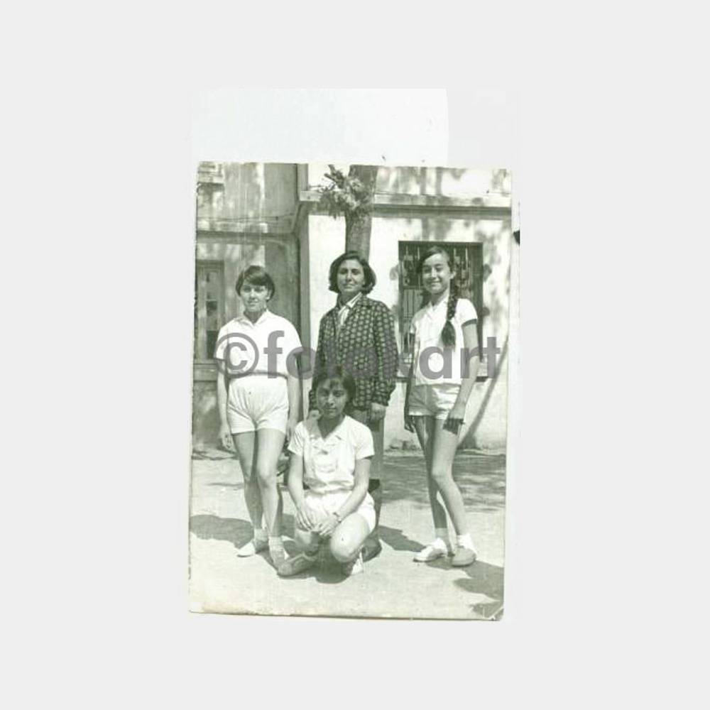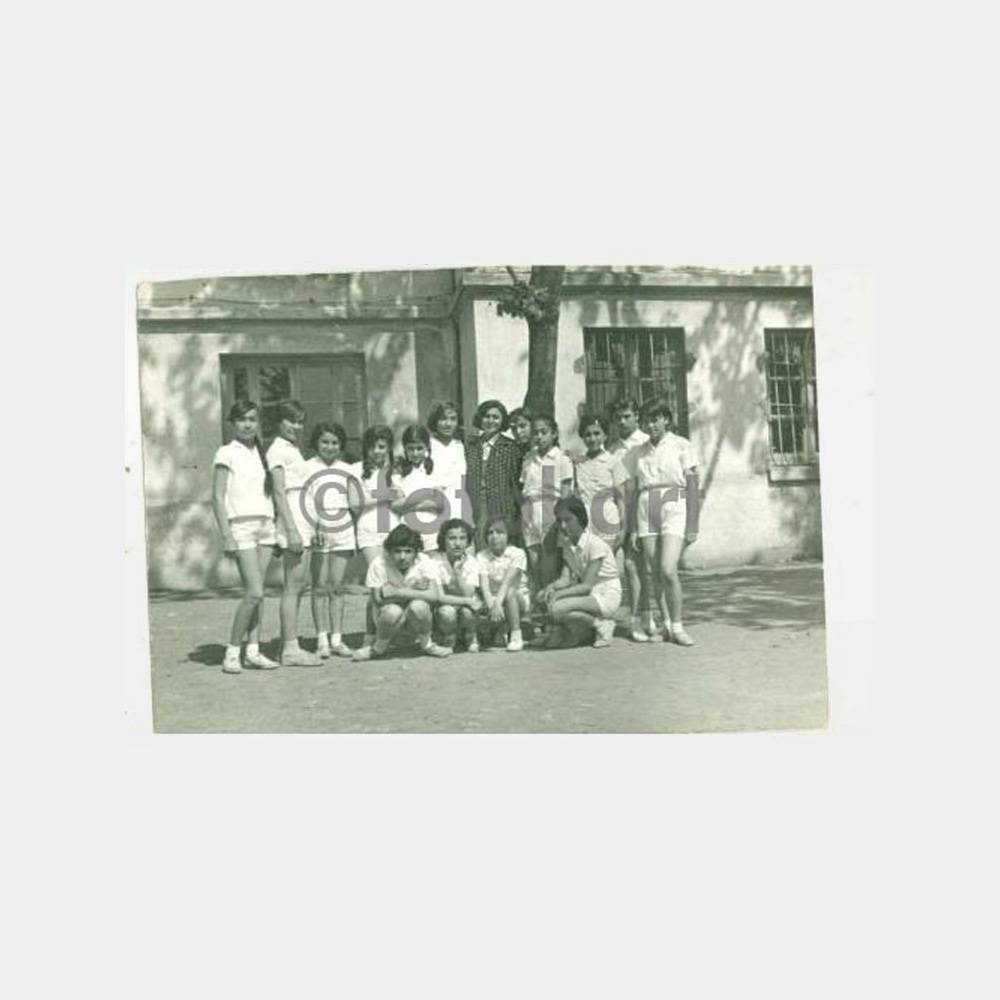 10,5 x 7,5 cm ebadında arkası yazılı 2 ad foto 1965-1966 ders yılı ı-k sınıfından Emine Sema Müzeyyen ile öğretmenleri görünüş