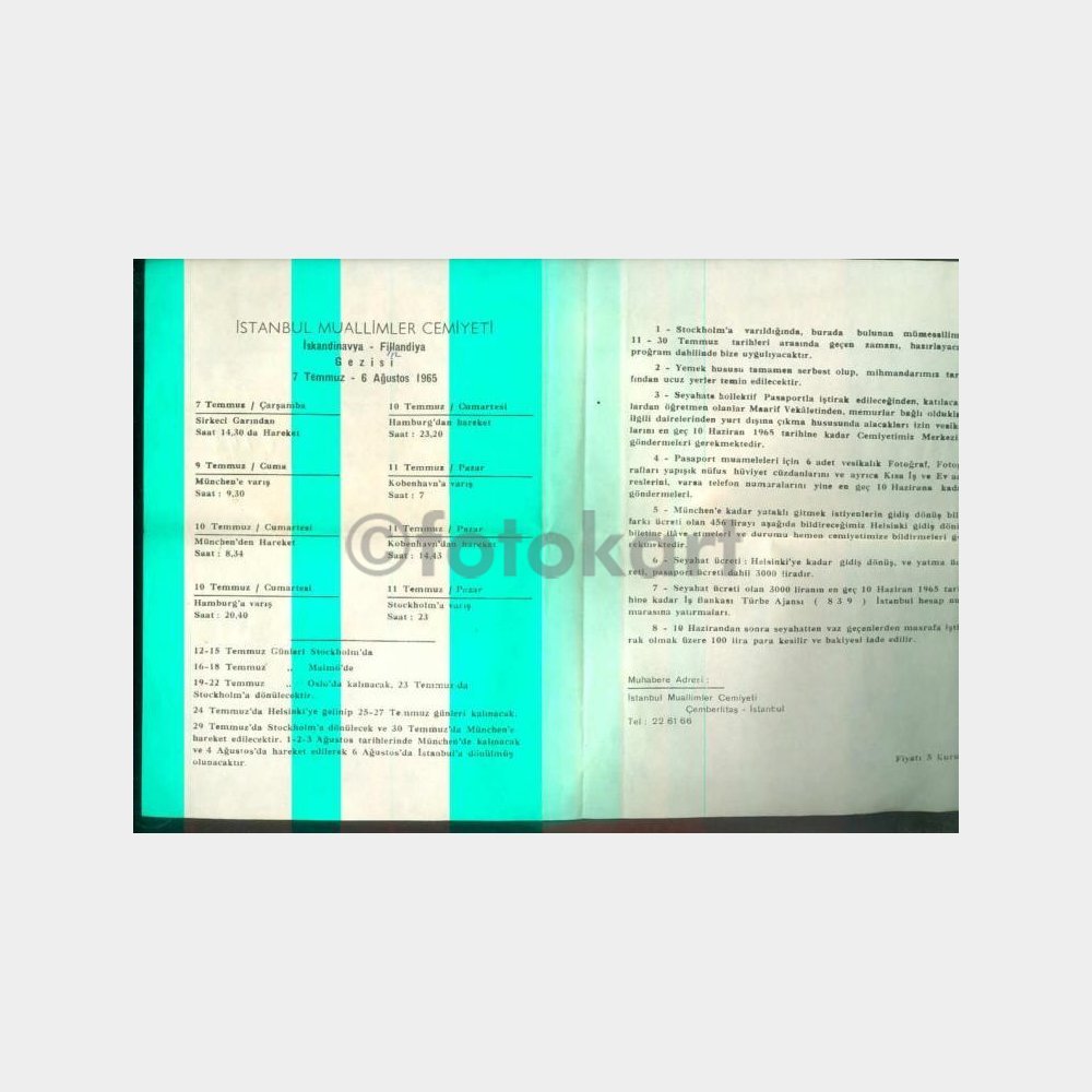 1965 İstanbul Muallimler Cemiyeti Gezi Programı