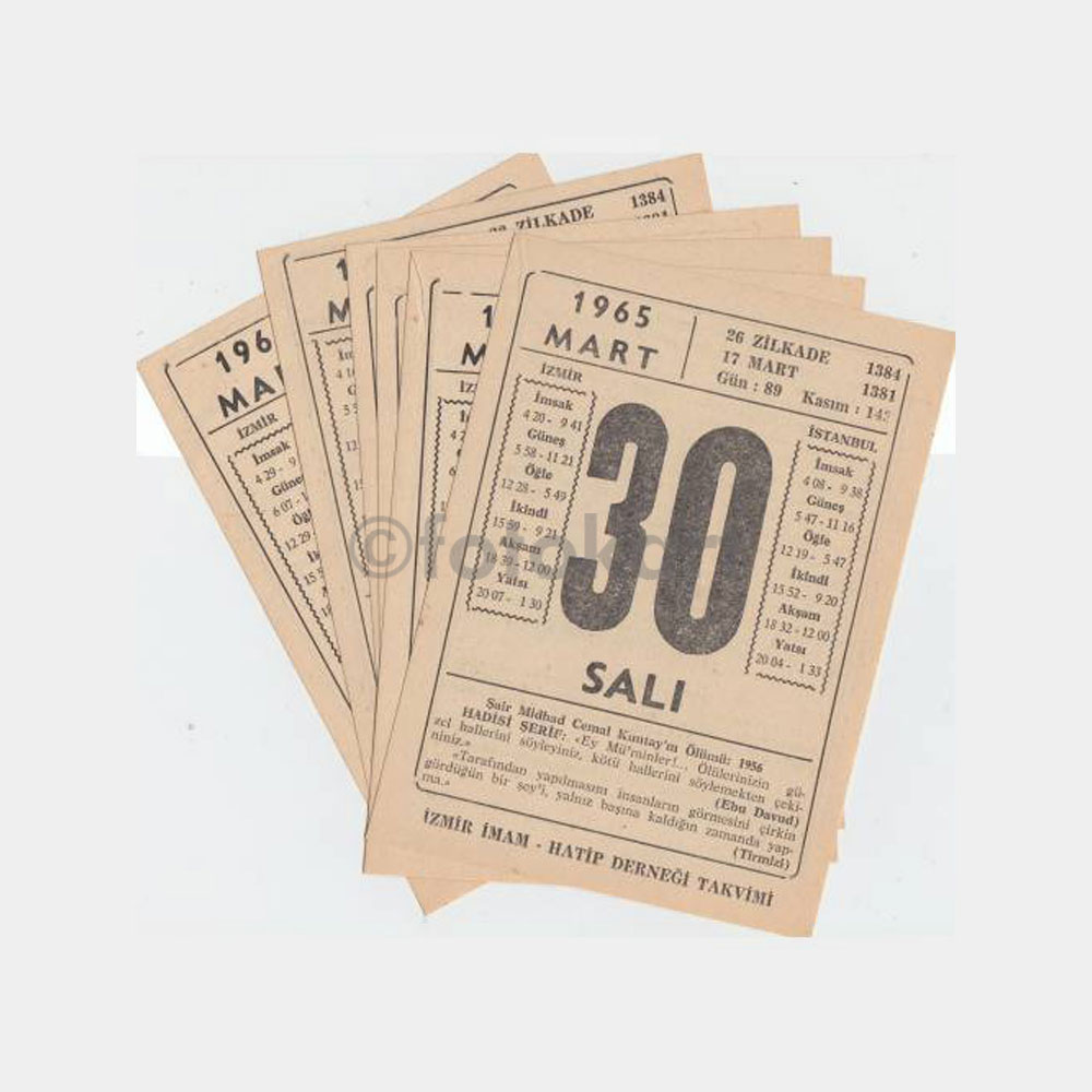 “1965 İzmir İmam Hatip -6 Adet- Takvim Yaprakları” için yorum yapan ilk kişi siz olun