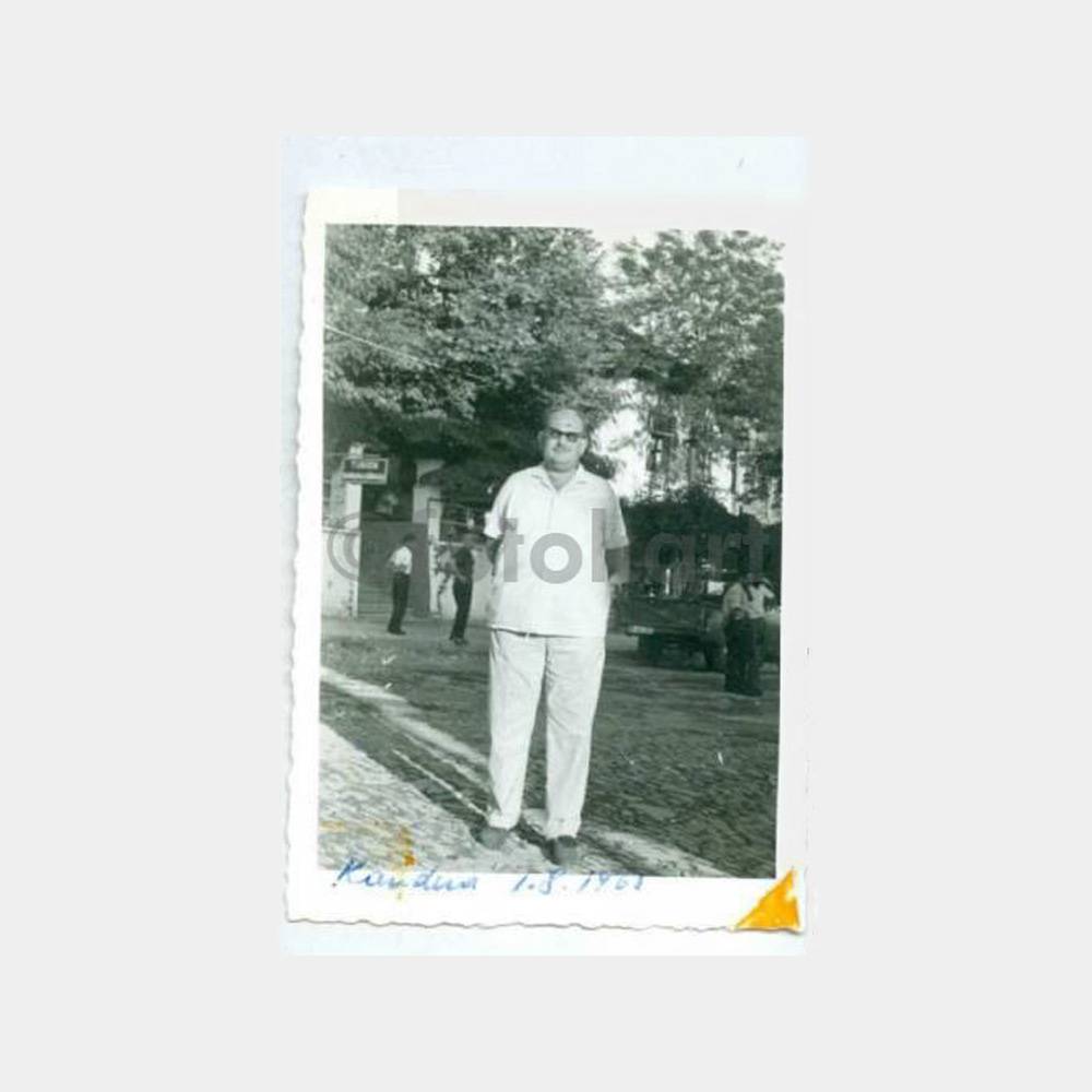 Bir albümden çıkma 6 x 9 cm ebadında arkası albüm kartonu yapışığı var arka planda turizm danışma bürosu görülmekte