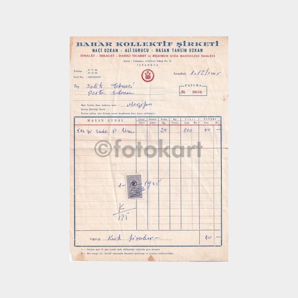 Kategoriler: Koleksiyon, Eski Belge-Efemera, Türkçe