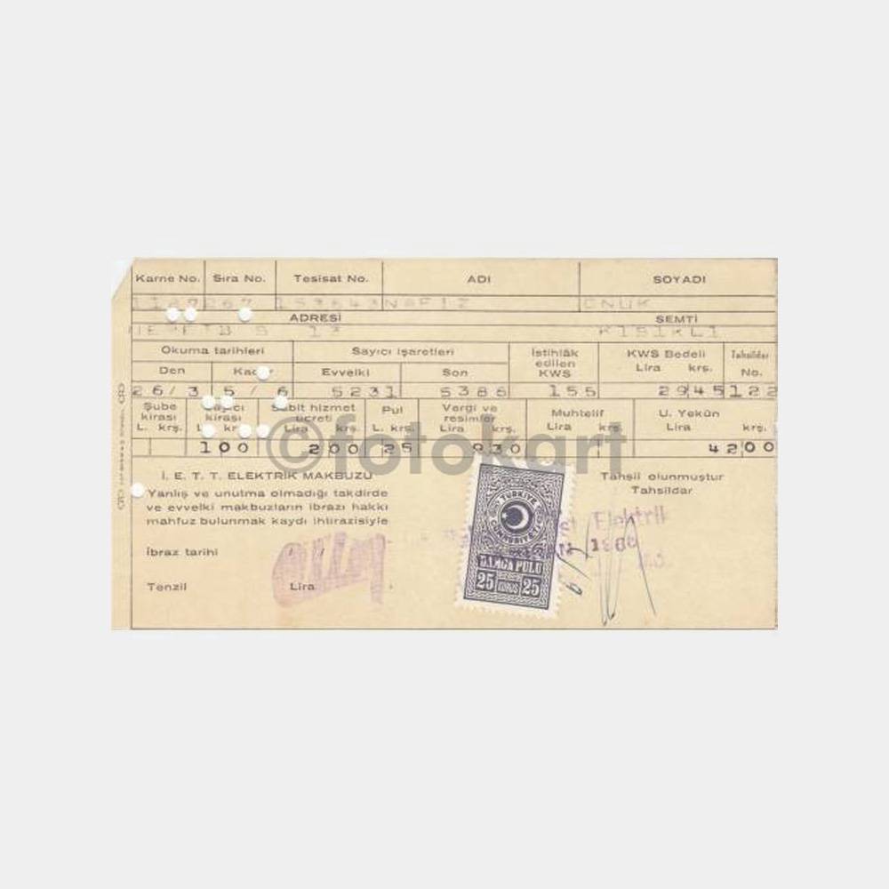 “1965 Üsküdar Kısıklı – Delikli Elektrik Sarf Kart Faturası” için yorum yapan ilk kişi siz olun Yanıtı iptal et