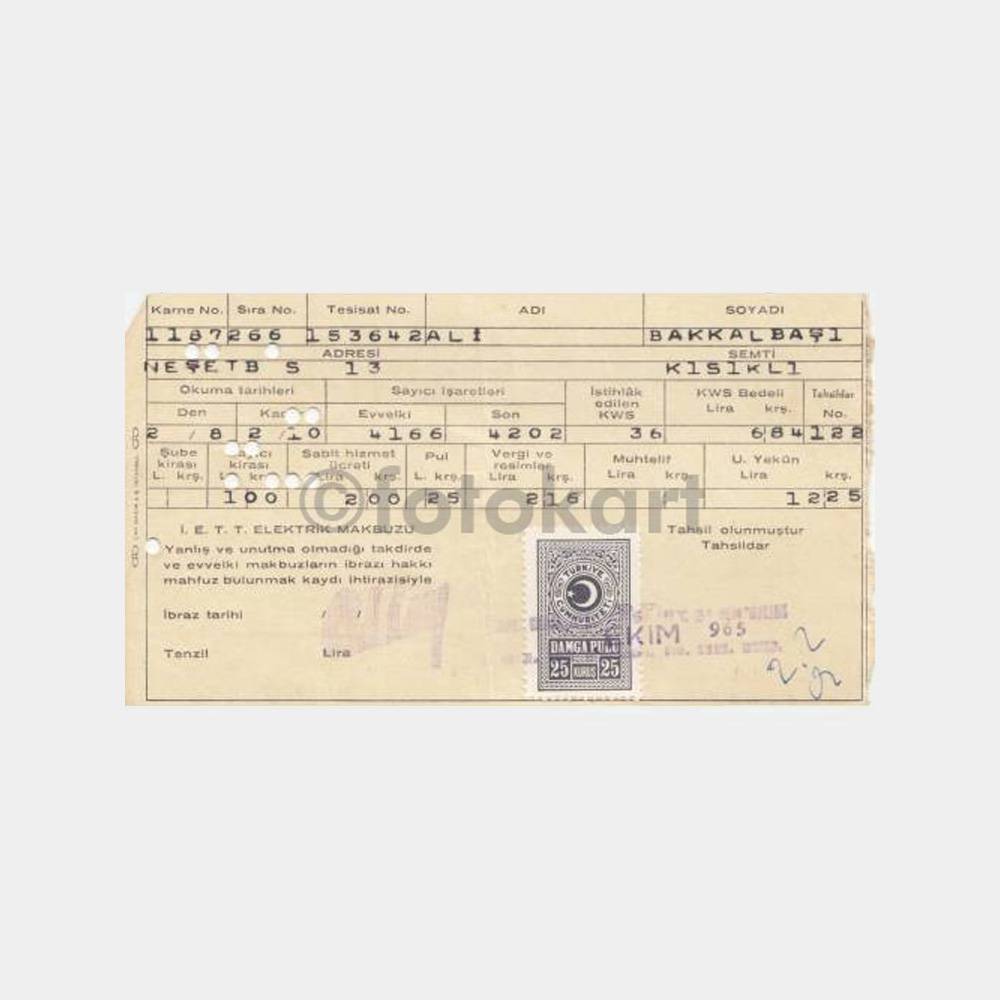 “1965 Üsküdar Kısıklı – Delikli Elektrik Sarf Kart Faturası” için yorum yapan ilk kişi siz olun