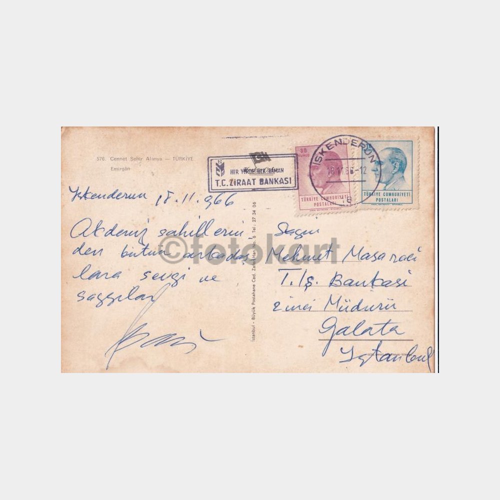 1966 Alanya Emirgan Plajı Kartpostal (İskenderun Posta Damgalı)