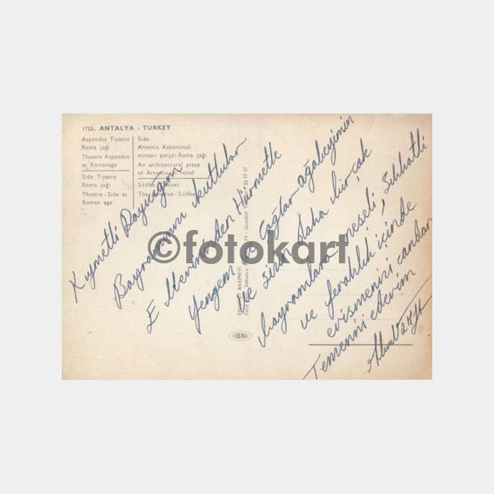 “1966 Antalya Side Aspendos Silifke Kartpostal” için yorum yapan ilk kişi siz olun Yanıtı iptal et