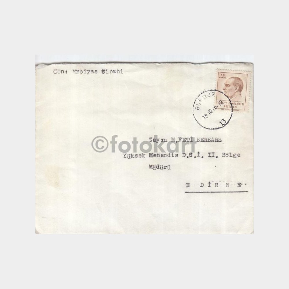 1966 Burdur Posta Damgalı Ata Pullu Zarf