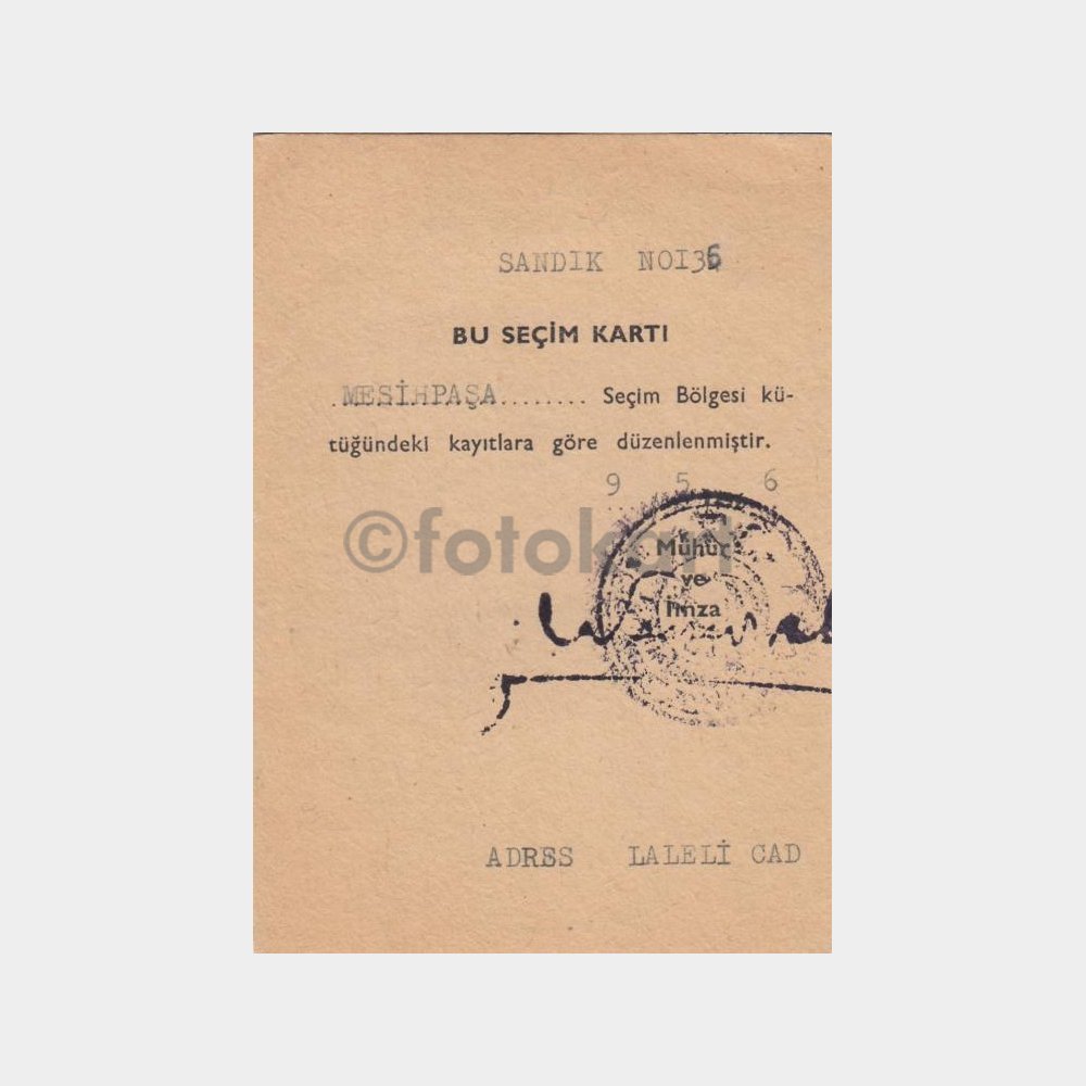 8 x 12 cm ebadında, koleksiyon amaçlı eski seçmen kartı.