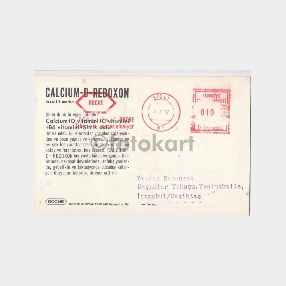 1967 İstanbul Roche İlaç Tanıtım Kartpostal