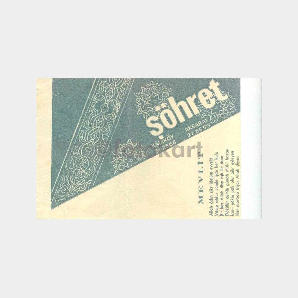 “1967 Şöhret Şekercisi Mevlit Baskılı Kağıdı” için yorum yapan ilk kişi siz olun Yanıtı iptal et