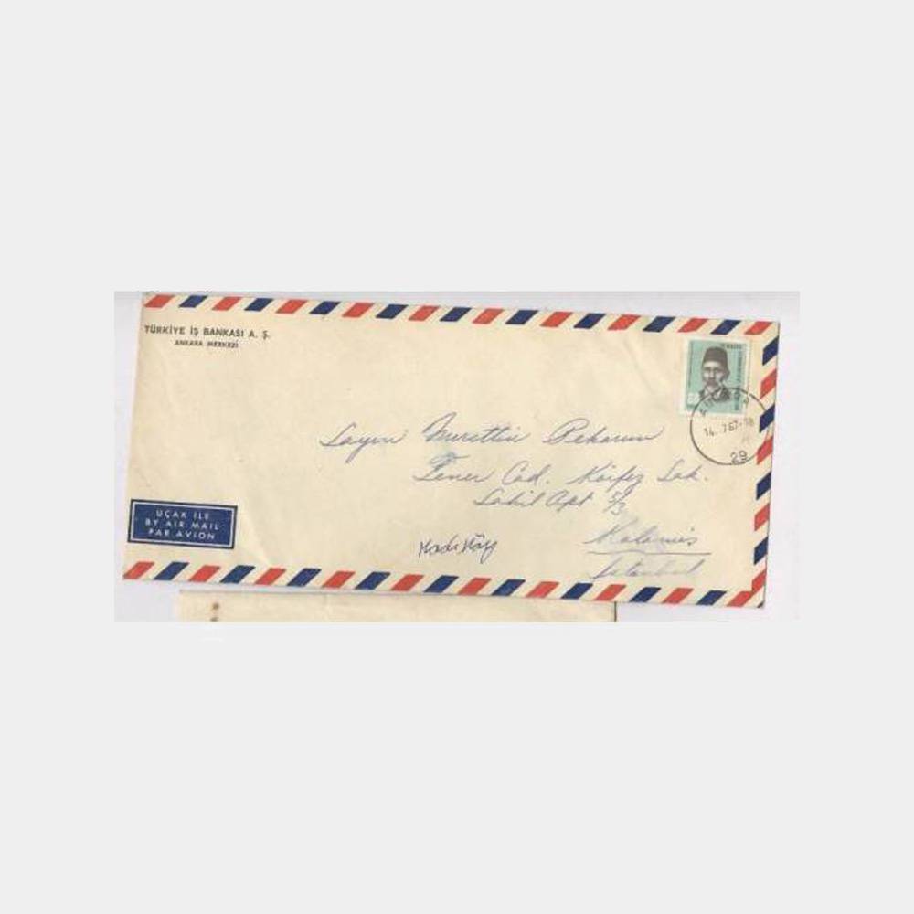 1967 T. İş Bankası Ankara Posta Damgalı Zarf