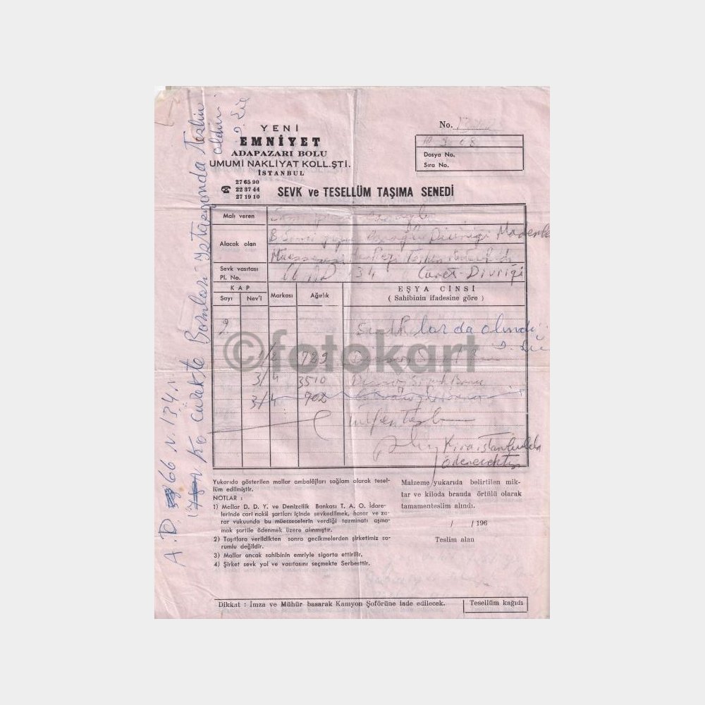 Nakliye belgesi.