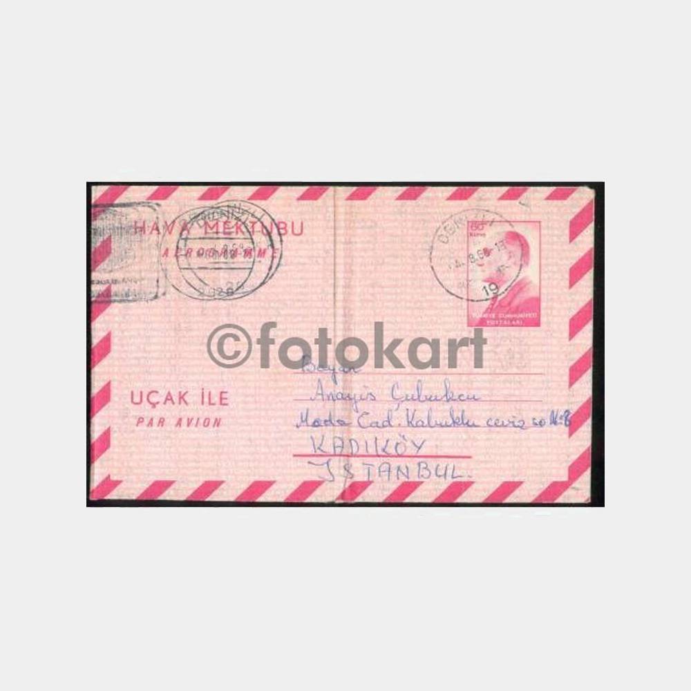 1968 Denizli Aerogramme Yazılı Hava Mektubu