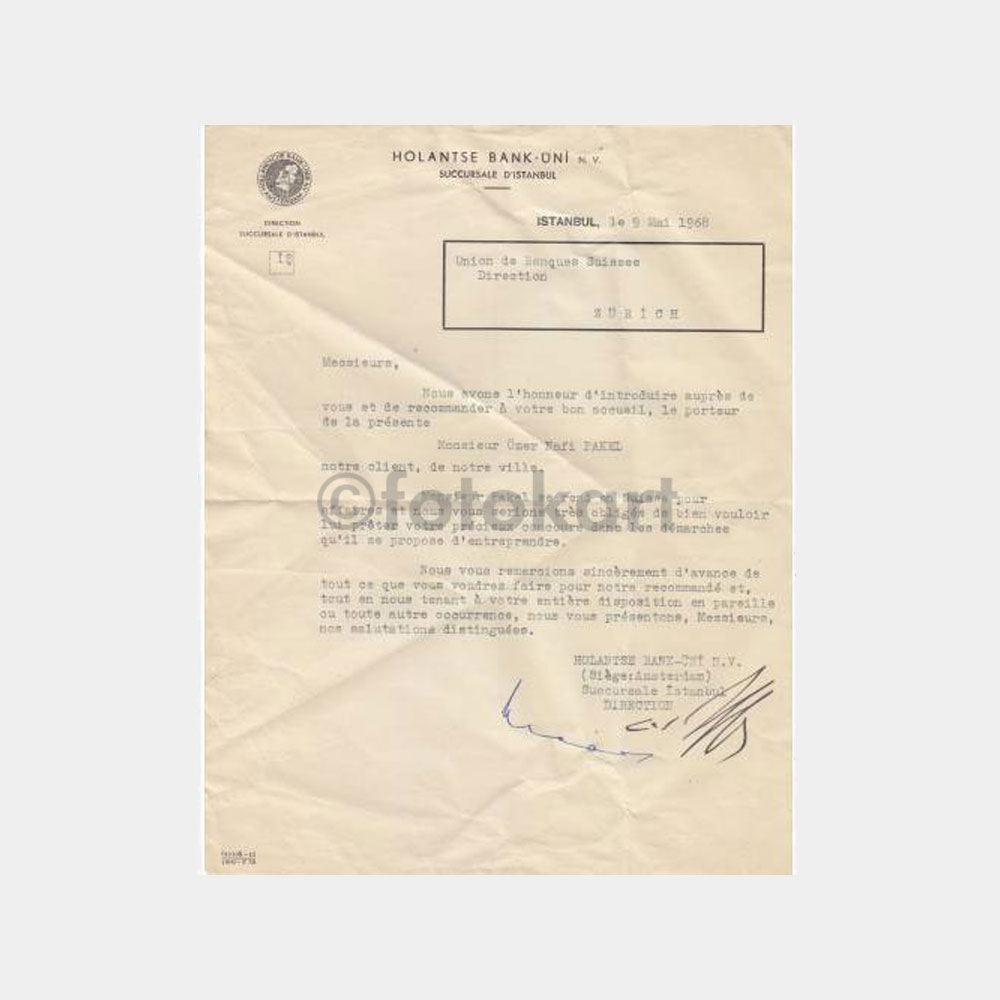 1968 Hollanda Bankası Antetli Yazısı