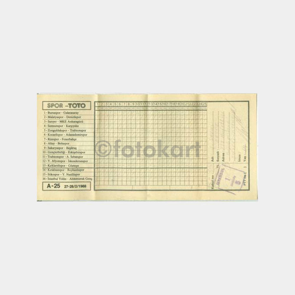 Çok temiz. Spor Toto oynanmış, kupon kağıdı yazılı.