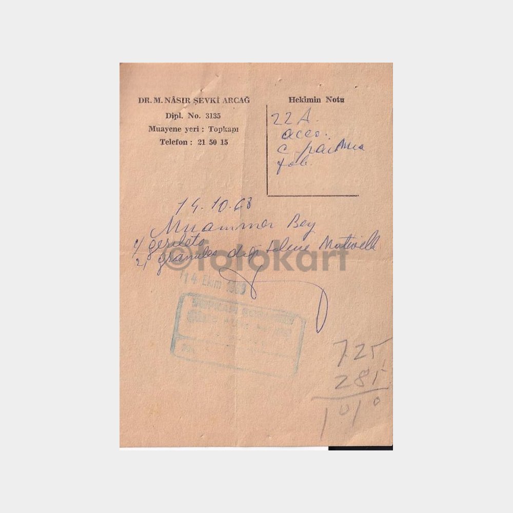1968 Topkapı Doktor Nasır Şevki Arçağ Reçetesi