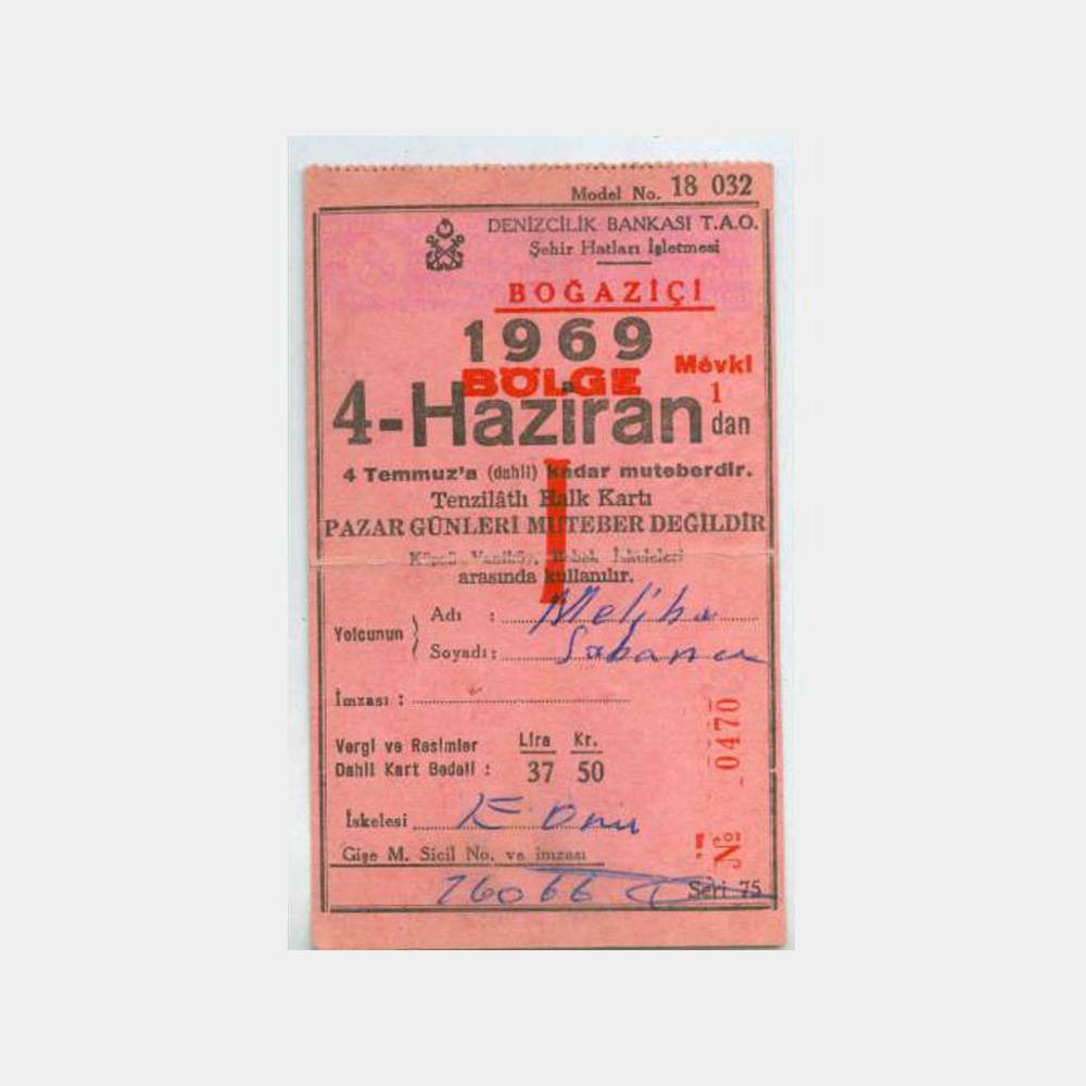 1969 Denizcilik Bankası Boğaziçi Vapur Kartı