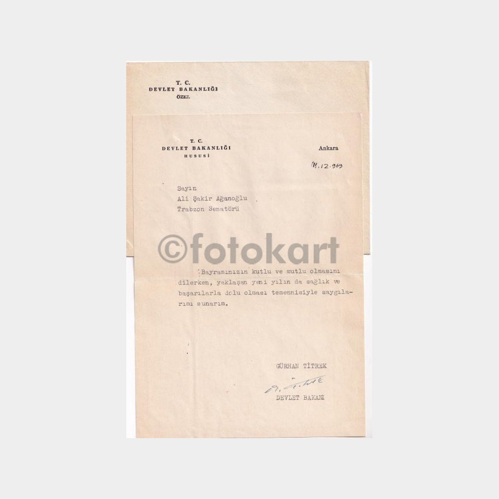 “1969 Devlet Bakanı Gürhan Titrek İmzalı Tebrik Yazısı” için yorum yapan ilk kişi siz olun