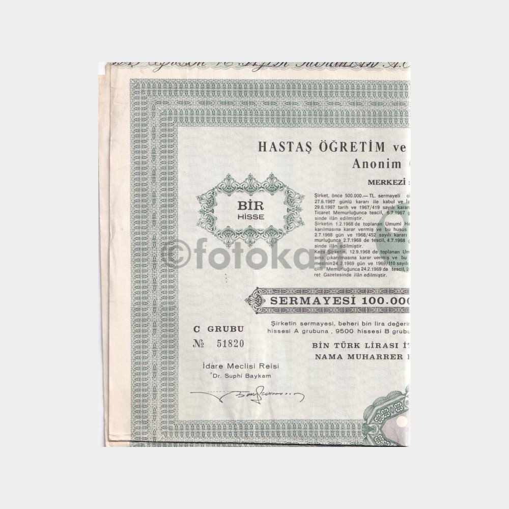 1969 Hastaş A.O. 1.000 TL Nominal Hisse Senedi (Koleksiyon Amaçlı)