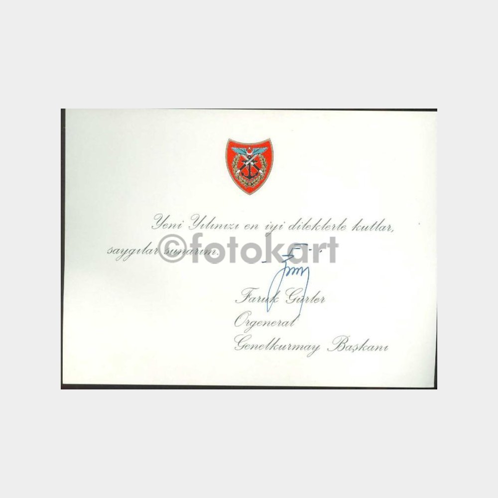 1969 Orgeneral Faruk Gürler Tebrik Kartı