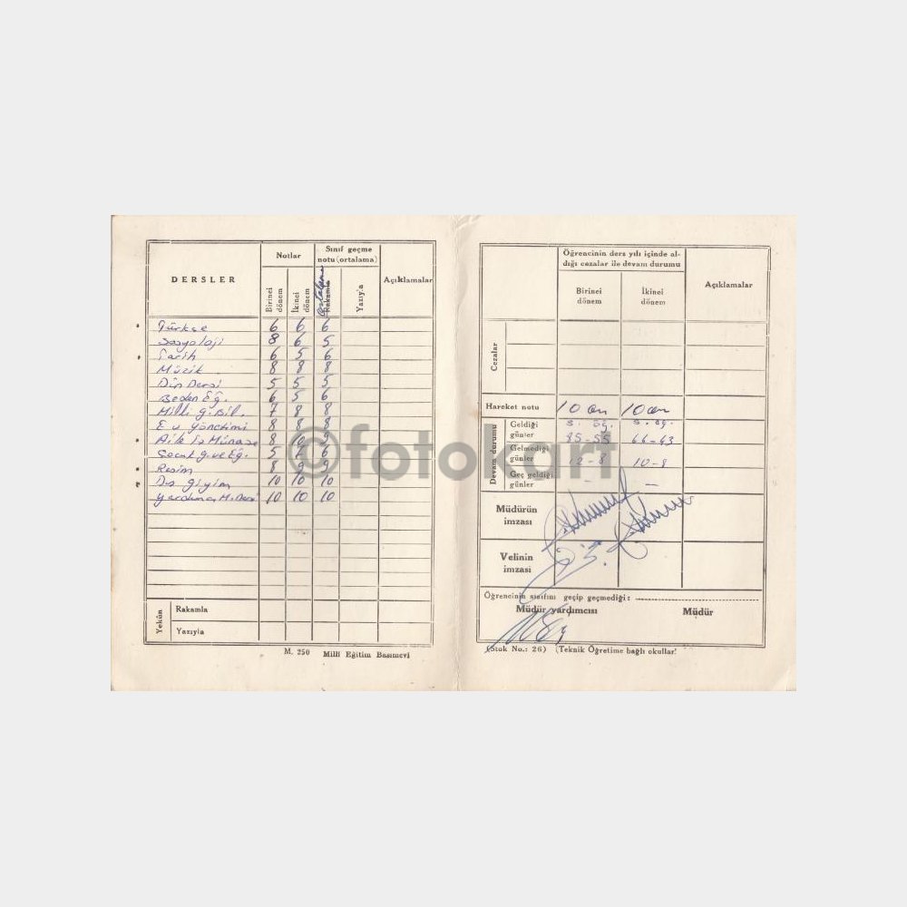 Çok temiz sanat okulu karnesi.
