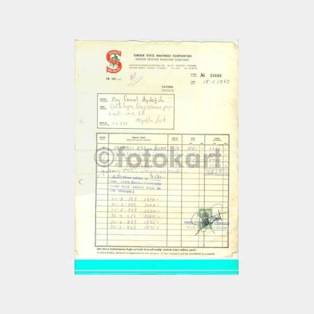 1969 Singer Dikiş Makinesi Başlıklı Radyo Faturası