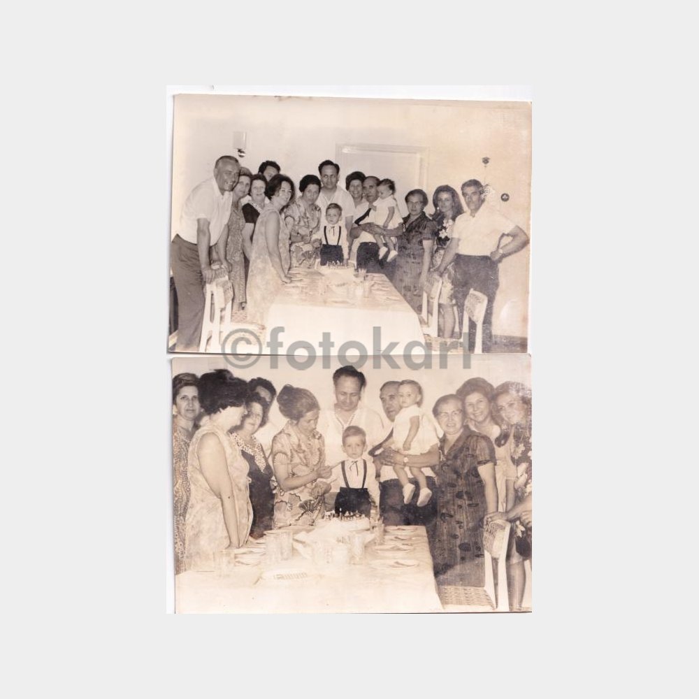 1969 Yeşilköy Foto Eyfel Damgalı Çocuk Doğum Günü Kutlaması 2 Adet Fotoğraf
